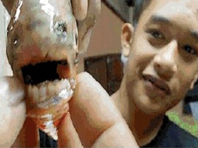 Abdul Ghafar Md Nasir, 44 terkejut setelah mendapati seekor ikan yang dipancing di Tasik Beris, Sik, minggu lalu, mempunyai gigi seakan-akan gigi manusia. Abdul Ghafar berkata, ikan ganjil itu dipancing anak saudaranya, Farizul malah ia yang paling awal menyambar umpan.“Pada mulanya kami menyangka ia adalah ikan lampam namun kulitnya pada bahagian dada berwarna kemerah-merahan, malah sisiknya juga halus. “Sebaik tiba di rumah, ikan itu disiang dan digoreng. Saya dan adik-beradik yang lain menjamah hidangan itu walaupun pada mulanya timbul rasa takut kalau-kalau ada kesan sampingan,” katanya.